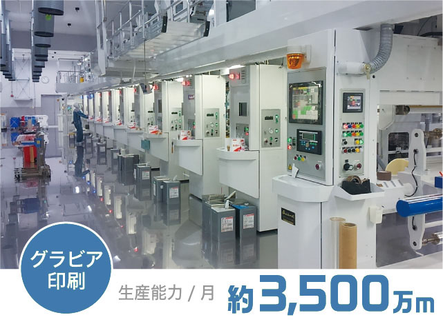 グラビア印刷機は3色機から10色機まで幅広く保有しており、単色印刷から多色印刷まで柔軟に対応可能です。