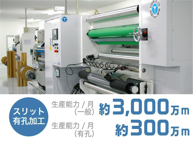 さらに、飲料水向けの胴巻きラベルにも対応できるスリット加工を行っています。