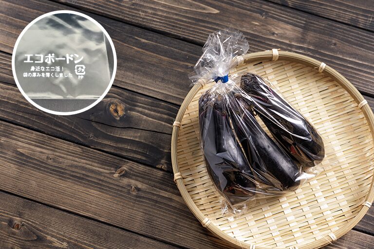 「エコボードン#15」は、フィルム厚#15のOPP防曇フィルムです。従来の20μフィルムと比較すると、約25%の薄肉化を実現します。ホウレン草、小松菜、春菊、水菜、リーフレタス、ピーマン、パンなどにおすすめです。