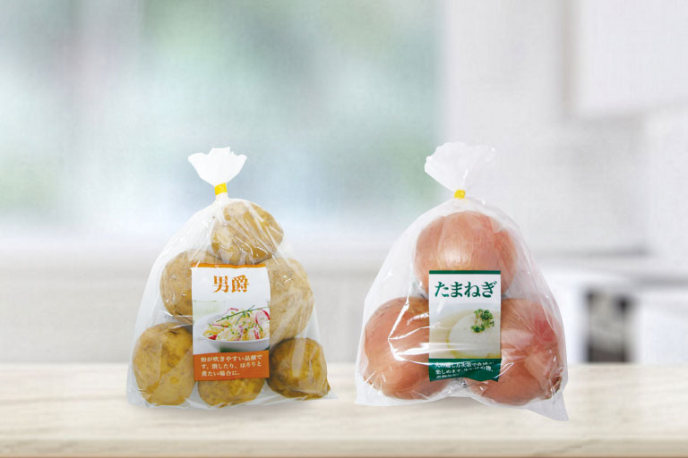 使い切れる量目で「食品ロス」に配慮した、青果売場向け少量パック。作物名やJAN表示付きで、売場作業の負担も軽減します。