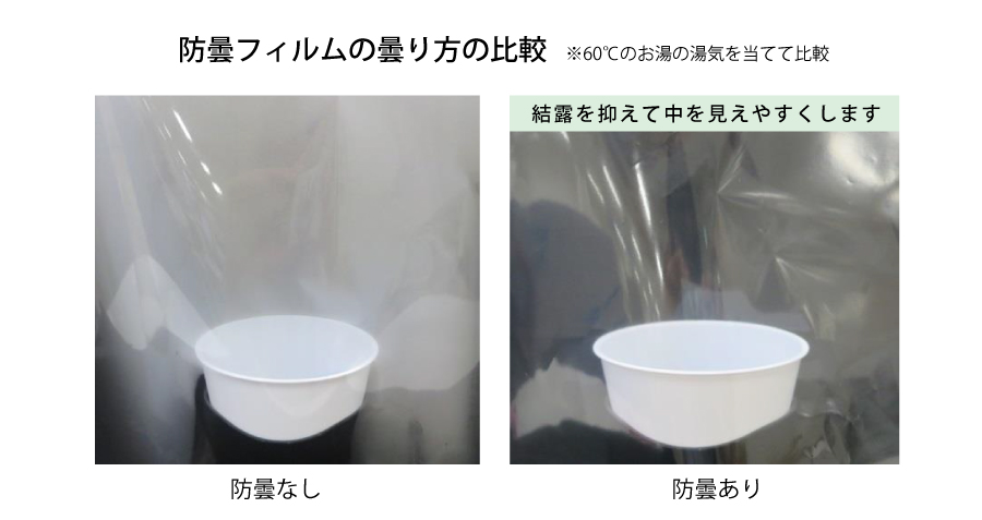 製造方法としては、製膜工程で防曇剤をフィルムに練り込む方法や、表面に塗布する方法があり、いずれも高い曇り抑制効果を発揮します。見栄えの良い商品陳列と鮮度保持を同時に実現できる点が特長です。