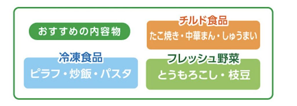 • 冷凍食品・フレッシュ野菜・チルド食品に。