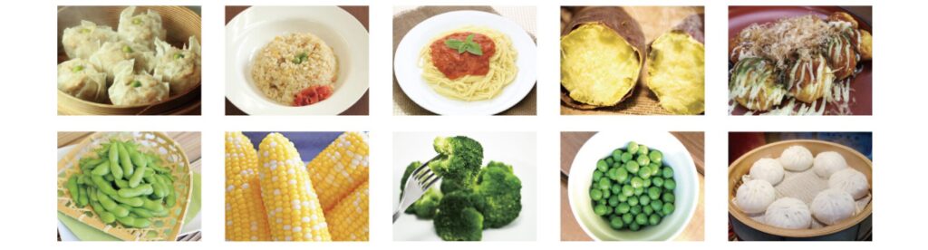 チルド食品や冷凍食品に向いている形状です。一食分のピラフ・チャーハンなどの米飯や、中華まん・しゅうまいなどがふっくらと仕上がります。