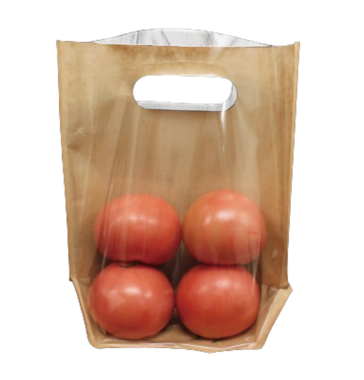 背面のクラフト紙の見た目や手触りが、ナチュラルな風合いを演出します。前面は透明フィルムで袋の外から中身の状態などを確認しやすいため、店頭での鮮度チェックもバッチリ!