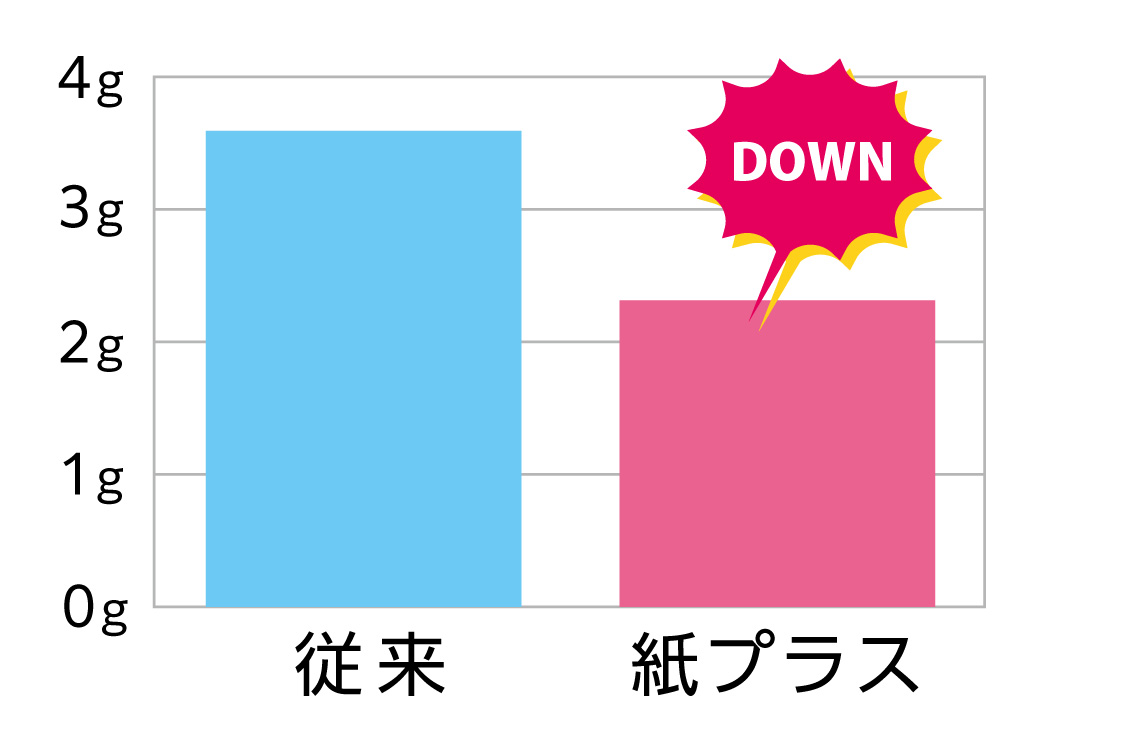 ※当社調べ。200 × 220+GZ45mm サイズのスタンドパックでのプラスチック重量での比較。